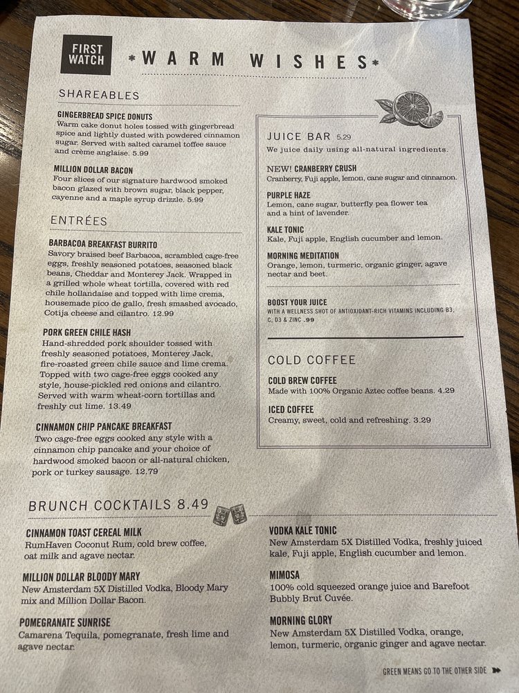 First Watch is a casual dining spot located in Omaha, NE, offering a variety of breakfast, brunch, and lunch options. The menu features delicious items like the Tomato Basil Soup, Cobb Salad, Sweet Honey Pecan Salad, The Works Omelet, Morning Market Veg Omelet, and Bacado Omelet. Customers have raved about the friendly service, farm-fresh produce, gluten-free options, and the signature lemon ricotta pancakes. The cozy atmosphere, outdoor seating, and consistent quality across locations make First Watch a go-to spot for a fulfilling meal. With options for vegan and vegetarian diets, as well as ample parking and WiFi access, this restaurant caters to a diverse range of customers. If you're in the mood for a satisfying and flavorful breakfast experience, First Watch is a must-visit destination.